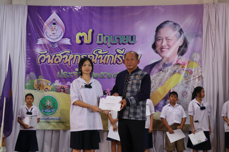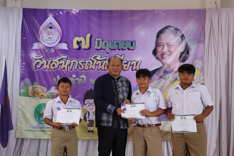 วันที่ 6 มิถุนายน 2568 นางผ่องศรี รวมสุข สหกรณ์จังหวัดกำแพงเพชร พร้อมด้วยบุคลากร ดำเนินการโครงการ “7 มิถุนายน วันสหกรณ์นักเรียน จังหวัดกำแพงเพชร ประจำปี 2568” โดยมีนายกองเอกชัยพฤกษ์ เชียรธานรักษ์ ปลัดจังหวัดกำแพงเพชร เป็นประธานเปิด โดยมีหัวหน้าส่วนราชการ,คณะครูนักเรียน,ผู้แทนสหกรณ์,ขบวนการสหกรณ์จังหวัดกำแพงเพชร ศูนย์ถ่ายทอดเทคโนโลยี การสหกรณ์ที่ 14 จังหวัดชัยนาท และหน่วยงานต่างๆที่เกี่ยวข้อง เข้าร่วมโครงการ เนื่องจากรัฐบาลได้เห็นความสำคัญของระบบสหกรณ์ จึงได้กำหนดให้วันที่ 7 มิถุนายน ของทุกปี เป็นวันสหกรณ์นักเรียน เพื่อเฉลิมพระเกียรติสมเด็จพระกนิษฐาธิราชเจ้า กรมสมเด็จพระเทพรัตนราชสุดาเจ้าฟ้ามหาจักรีสิรินธรฯ สยามบรมราชกุมารีที่ทรงริเริ่มกิจกรรมส่งเสริม สนับสนุนและเผยแพร่การจัดการเรียนรู้การสหกรณ์ในโรงเรียนให้แพร่ขยาย โดยได้นำแนวทางการดำเนินการจากแนวพระราชดำริในโรงเรียนตำรวจตระเวนชายแดนมาปรับใช้ซึ่งประสบผลสำเร็จและขยายผลดำเนินการทั่วทั้งประเทศ สำหรับกิจกรรมจัดขึ้นในวันนี้ มีวัตถุประสงค์เพื่อเฉลิมพระเกียรติสมเด็จพระกนิษฐาธิราชเจ้า กรมสมเด็จพระเทพรัตนราชสุดาเจ้าฟ้ามหาจักรีสิรินธรฯ สยามบรมราชกุมารี ที่ทรงริเริ่มให้จัดการเรียนรู้การสหกรณ์ในโรงเรียนเพื่อสร้างกิจกรรมสหกรณ์นักเรียน ส่งเสริมการจัดการเรียนรู้การสหกรณ์ในโรงเรียนให้แพร่หลาย ภายในงานมีกิจกรรมต่างๆ ประกอบด้วยการจัดนิทรรศการการจัดการเรียนรู้การสหกรณ์ในโรงเรียน นิทรรศการของโรงเรียนที่มีผลงานดีเด่น,กิจกรรมฐานเรียนรู้ พร้อมทั้งกิจกรรมในการประกวดการแข่งขันของนักเรียน ตั้งแต่ระดับชั้นอนุบาล 1 ถึง ระดับชั้นมัธยมศึกษาปีที่ 3 ซึ่งประกอบไปด้วยกิจกรรมหลากหลาย พร้อมทั้งมอบประกาศนียบัตร และรางวัลกิจกรรมต่างๆ ให้แก่คณะครู นักเรียน ผู้เข้าแข่งขัน ได้แก่รางวัลครูสหกรณ์ดีเด่น จำนวน 30 รางวัล รางวัลการประกวดระบายสี จำนวน 18 รางวัล รางวัลการประกวดเรียงความ จำนวน 9 รางวัล รางวัลการประกวดตกแต่งกระปุกออมสิน จำนวน 15 รางวัล รางวัลการประกวดตกแต่งกระปุกออมสิน จำนวน 9 รางวัล ณ โรงเรียนบ้านลานตาบัว ตำบลประชาสุขสันต์ อำเภอลานกระบือ จังหวัดกำแพงเพชร