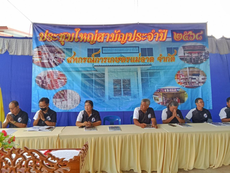 วันที่ 14 พฤศจิกายน 2568 สำนักงานสหกรณ์จังหวัดกำแพงเพชร โดยนางรุ่งนภา ยืนยง ผู้อำนวยการกลุ่มจัดตั้งและส่งเสริมสหกรณ์ รักษาราชการแทนสหกรณ์จังหวัดกำแพงเพชร เป็นประธานประชุมใหญ่สามัญประจำปี 2568 สหกรณ์การเกษตรแม่ลาด จำกัด พร้อมด้วยเจ้าหน้าที่ส่งเสริมสหกรณ์ เข้าร่วมประชุมใหญ่สามัญประจำปี 2568 พร้อมทั้งชี้แจงผลการจัดชั้นความเข้มแข็งและให้คำแนะนำส่งเสริมเพื่อให้สหกรณ์สามารถรักษาระดับความเข้มแข็งของสหกรณ์ ณ สหกรณ์การเกษตรแม่ลาด จำกัด ตำบลแม่ลาด อำเภอคลองขลุง จังหวัดกำแพงเพชร