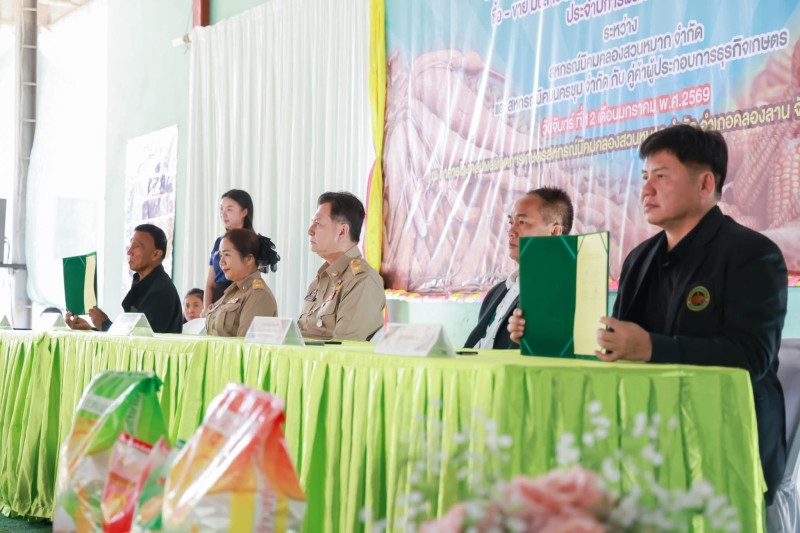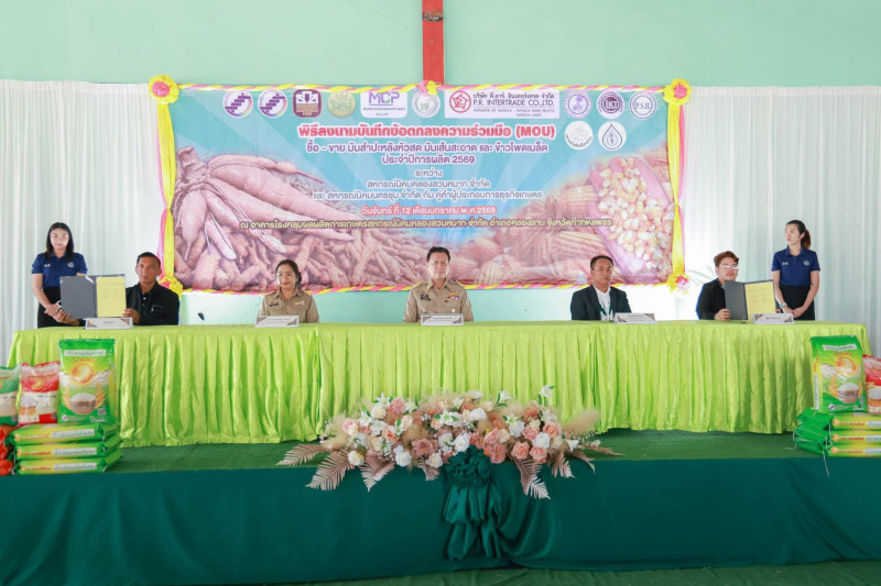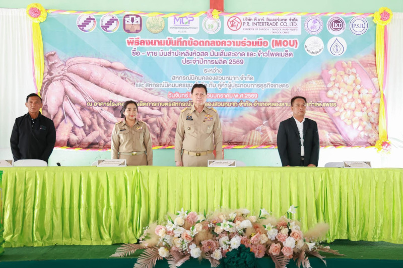 วันที่ 12 มกราคม 2569 นางสาวมณฑาทิพย์ บัวเทศ สหกรณ์จังหวัดกำแพงเพชร พร้อมด้วยบุคลากรสำนักงานสหกรณ์จังหวัดกำแพงเพชร ร่วมพิธีลงนามบันทึกข้อตกลง ซื้อ-ขาย มันสำปะหลังหัวสด, มันเส้นสะอาด และข้าวโพดเมล็ด โดยมีนายชาธิป รุจนเสรี ผู้ว่าราชการจังหวัดกำแพงเพชร เป็นประธานในพิธี ซึ่งเป็นการทำบันทึกข้อตกลงร่วมมือทางการค้าระหว่างสหกรณ์นิคมคลองสวนหมาก จำกัด และสหกรณ์นิคมนครชุม จำกัด กับคู่ค้าผู้ประกอบการประกอบการธุรกิจเกษตร จำนวน 10 แห่ง มูลค่า 1,411 ล้านบาท ณ อาคารโรงคลุมรักษาผลผลิตการเกษตรสหกรณ์นิคมคลองสวนหมาก จำกัด ตำบลสักงาม อำเภอคลองลาน จังหวัดกำแพงเพชร