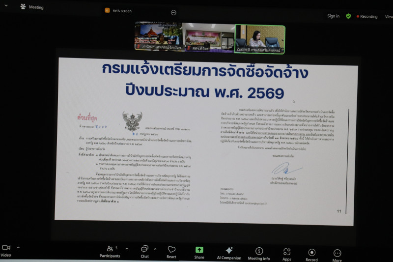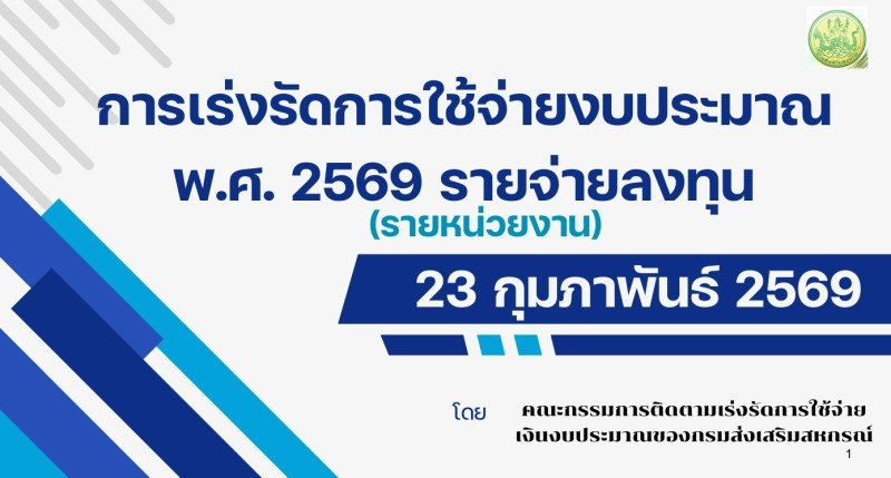 วันที่ 23 กุมภาพันธ์ 2569 นางสาวมณฑาทิพย์ บัวเทศ สหกรณ์จังหวัดกำแพงเพชร พร้อมด้วยผู้อำนวยการกลุ่มงานวิชาการ หัวหน้าฝ่ายบริหารทั่วไป และเจ้าหน้าที่นิคมสหกรณ์นครชุม เข้าร่วมประชุมติดตามเร่งรัดการก่อหนี้ และการเบิกจ่ายรายจ่ายลงทุน ( จังหวัดพิจิตร – กำแพงเพชร) ผ่านระบบ Zoom Meeting โดยมีนายณฤทธิ์ บุญชัย รองอธิบดีกรมส่งเสริมสหกรณ์ เป็นประธาน พร้อมนายศุภธีร์ อยู่วัฒนา ผู้ตรวจราชการกรม เขตตรวจราชการที่ 8 และ 18 นางสาววิภัสรา รถทอง ผู้อำนวยการกลุ่มบัญชีและงบประมาณ และเจ้าหน้าที่ที่เกี่ยวข้อง เข้าร่วมประชุม ณ ห้องประชุมกองพัฒนาสหกรณ์ด้านการเงินและร้านค้า ชั้น 4 กรมส่งเสริมสหกรณ์ เทเวศร์กรุงเทพมหานคร โดยถ่ายทอดสัญญาณปยังสำนักงานสหกรณ์จังหวัด สำหรับการประชุมในครั้งนี้ เพื่อเร่งรัดการใช้จ่ายภาครัฐ และรับทราบรายงานการตรวจสอบความคืบหน้า ของงบลงทุน งบเงินอุดหนุน และเงินกันไว้เบิกเหลื่อมปี 2568 และสรุปผลการดำเนินงานของจังหวัดพิจิตร และจังหวัดกำแพงเพชร